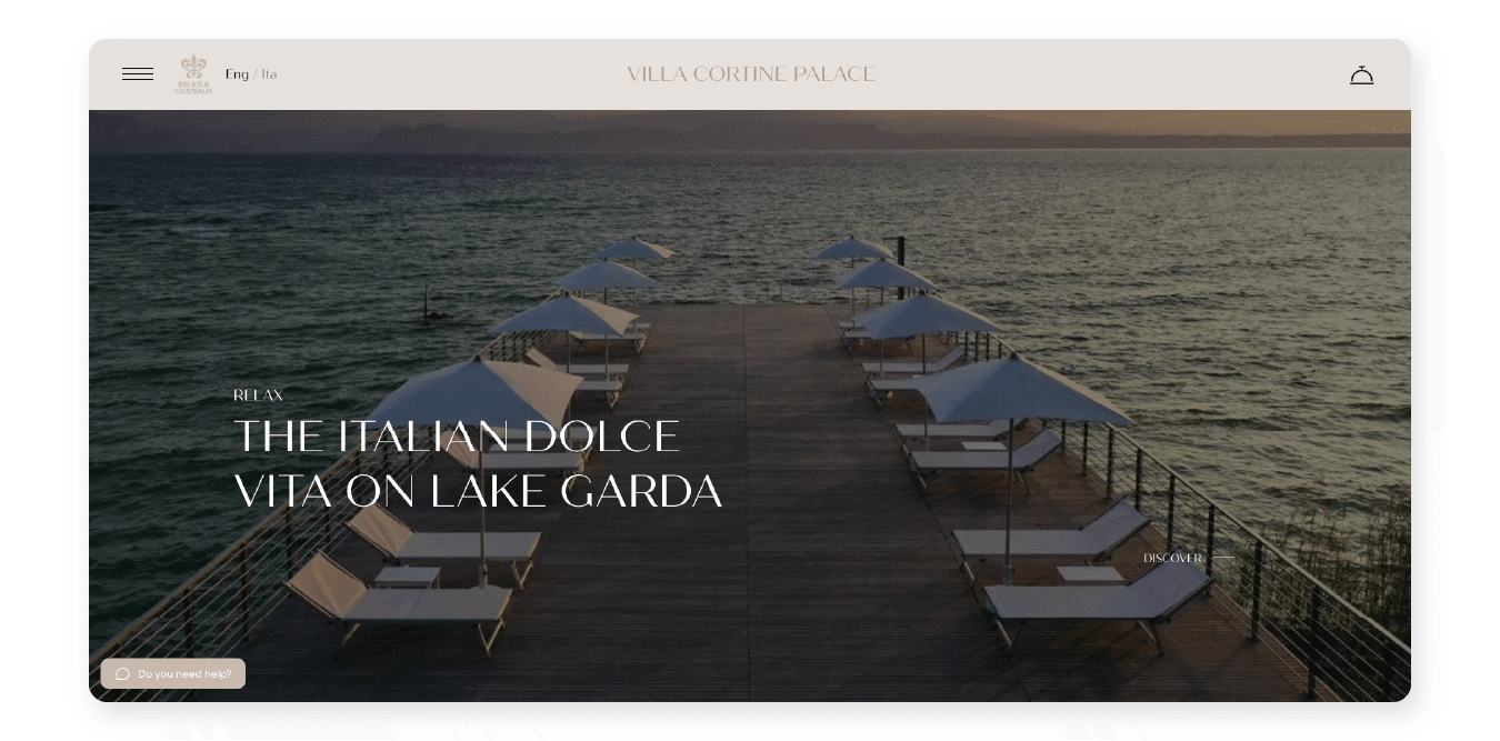 The paradigm of quiet luxury seems to have also found its place in website design. In fact, more and more establishments are opting for "less is more" graphics to communicate luxury, elegance and exclusivity, in which sophisticated minimalism dominates the picture, with clear layouts, well-defined spaces and evocative images that don't flaunt opulence but rather highlight the sense of serenity and wellbeing that the establishment offers its guests. Perfect examples of this trend are the new site of Villa Cortine Palace Hotel, a late 19th-century period residence characterised by a very high level of service, which for its official site chooses few graphic elements, leaving ample space for photos and short emotional copy, but also the site of Canary Riverside Plaza where the images with an essential flavour, soft colours and incisive phrases succeed in perfectly conveying the class of this five-star establishment in the heart of Canary Wharf in London.