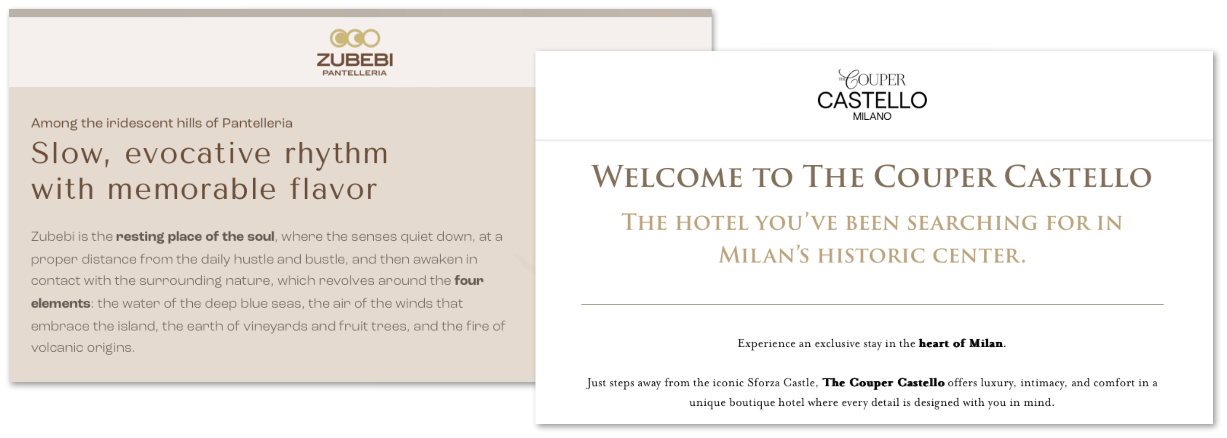 Of all the elements that make up a website, copywriting is perhaps the one that is most frequently underestimated. All too often, you'll come across content that lacks a clear strategy, contains outdated information pulled from old materials, or is the result of DIY translations… In fact, words matter just as much as every other aspect of communication: the text is what gives a website its voice and can determine whether a visitor decides to make a booking or leave the page.