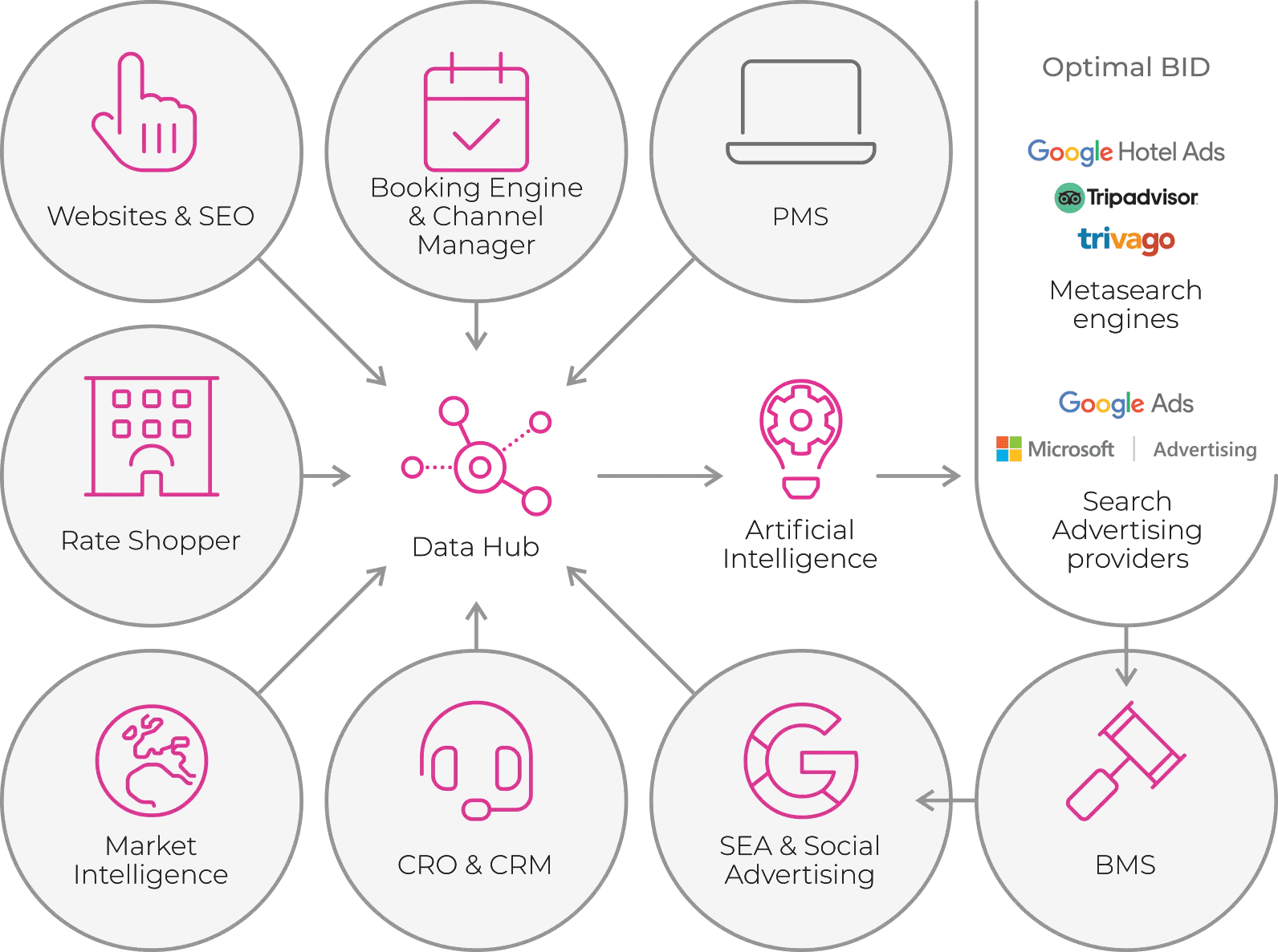 Contrariamente a quanto suggerito dall’approccio tradizionale, nonché il più diffuso, l’utilizzo di un budget predefinito non è la soluzione vincente. Il rischio in questo caso non è solo quello di vincolare gli investimenti alla propria capacità di spesa, ma anche di sospendere le campagne una volta consumato tutto il budget stanziato. La gestione Always On, invece prevede un budget dinamico e potenzialmente illimitato che permette di seguire le oscillazioni del mercato in tempo reale massimizzando l’investimento quando la domanda è più elevata e contenendo l’attività quando i volumi sono limitati, e garantisce così in ogni momento la massima performance possibile. Con questo approccio è possibile, inoltre, riuscire ad essere competitivi rispetto alle attività di advertising delle OTA che, grazie a capacità di spesa molto elevate, si troverebbero in apertura di tutte le pagine dei risultati.