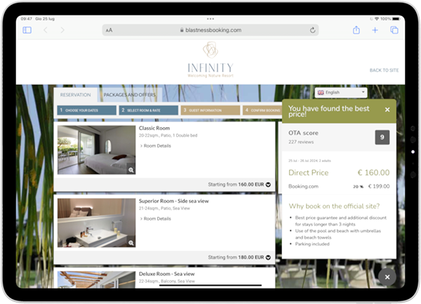 Per essere certi che il sito ufficiale mantenga competitività rispetto alle OTA è poi necessario monitorare attentamente la propria distribuzione elettronica e intervenire tempestivamente qualora un portale dovesse risultare più vantaggioso. Per garantire la massima performance, il monitoraggio può anche essere automatizzato, adottando strumenti quali il Parity Check Blastness che, grazie all’indice Distribution Health aiuta gli albergatori ad evitare disparità tariffarie.