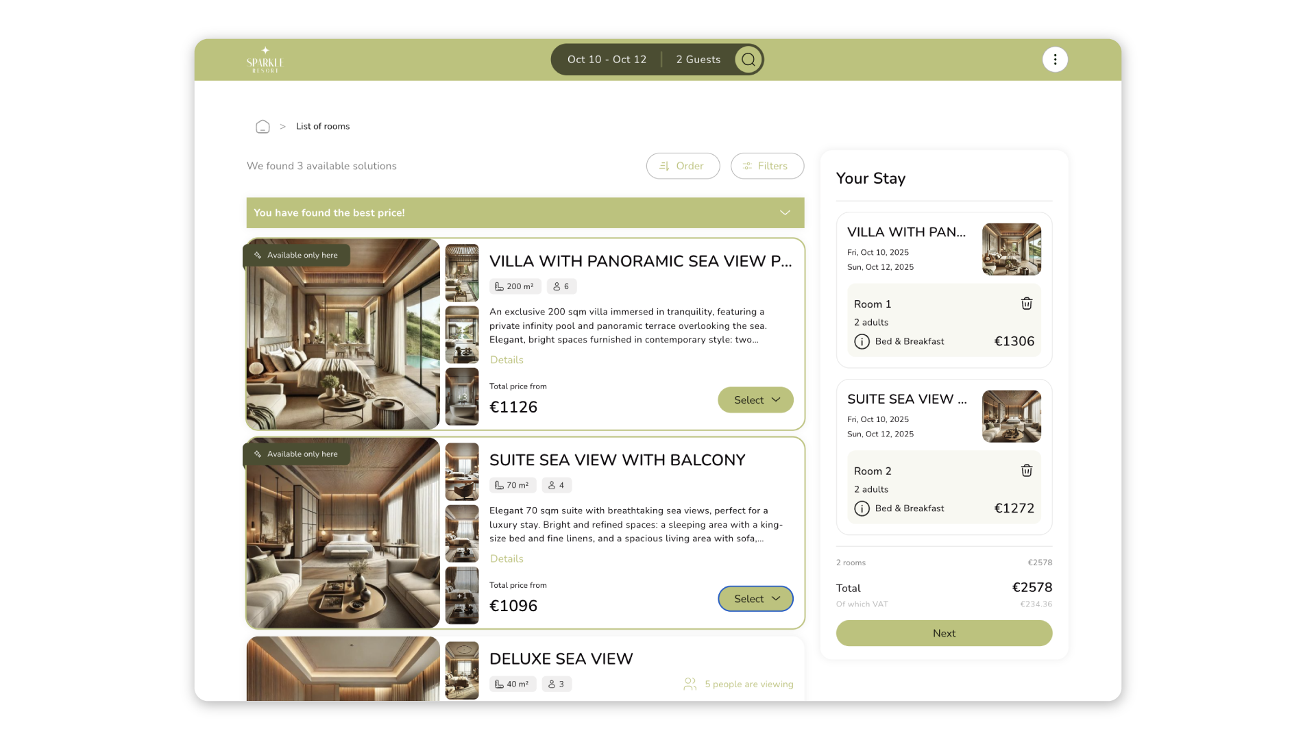 All’interno del percorso di prenotazione interviene poi AIBE, la tecnologia di intelligenza artificiale che porta la personalizzazione direttamente nel booking engine. Analizzando in tempo reale le azioni dell’utente – dalle date selezionate al numero di ospiti, fino al modo in cui interagisce con camere, tariffe e pacchetti – AIBE adatta dinamicamente immagini, messaggi, vantaggi della prenotazione diretta e proposte. Le opzioni non vengono più mostrate in ordine statico, ma vengono riordinate in base alla rilevanza per quel visitatore specifico, aumentando la probabilità che la soluzione ideale appaia subito, senza distrazioni. Il risultato è un ambiente che non si limita a mostrare disponibilità e prezzi, ma si trasforma in uno spazio capace di dialogare con il viaggiatore e guidarlo nel modo più naturale verso la scelta più pertinente.
