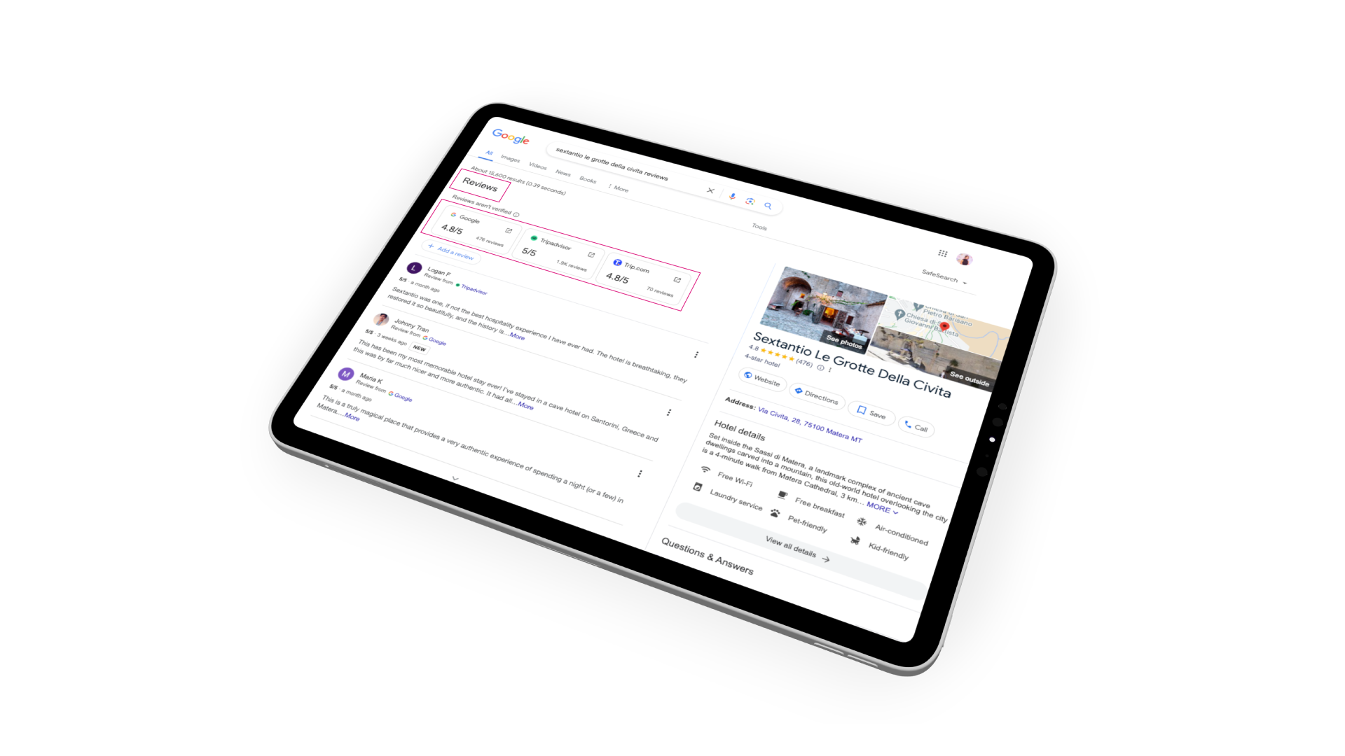 In risposta ai criteri stabiliti dal DMA, c'è stata una significativa diversificazione delle fonti di recensioni degli hotel. Ora, oltre al sistema di recensioni di Google, sono state integrate reviews da piattaforme quali TripAdvisor e OTAs come Booking.com, offrendo agli utenti un più ampio spettro di valutazioni. Va notato come questo cambiamento è in realtà una sorta di ritorno alle origini per Google, perché, come gli utenti più esperti potrebbero ricordare, già nel 2018 Google utilizzava per le sue recensioni anche informazioni da Booking.com e TripAdvisor.