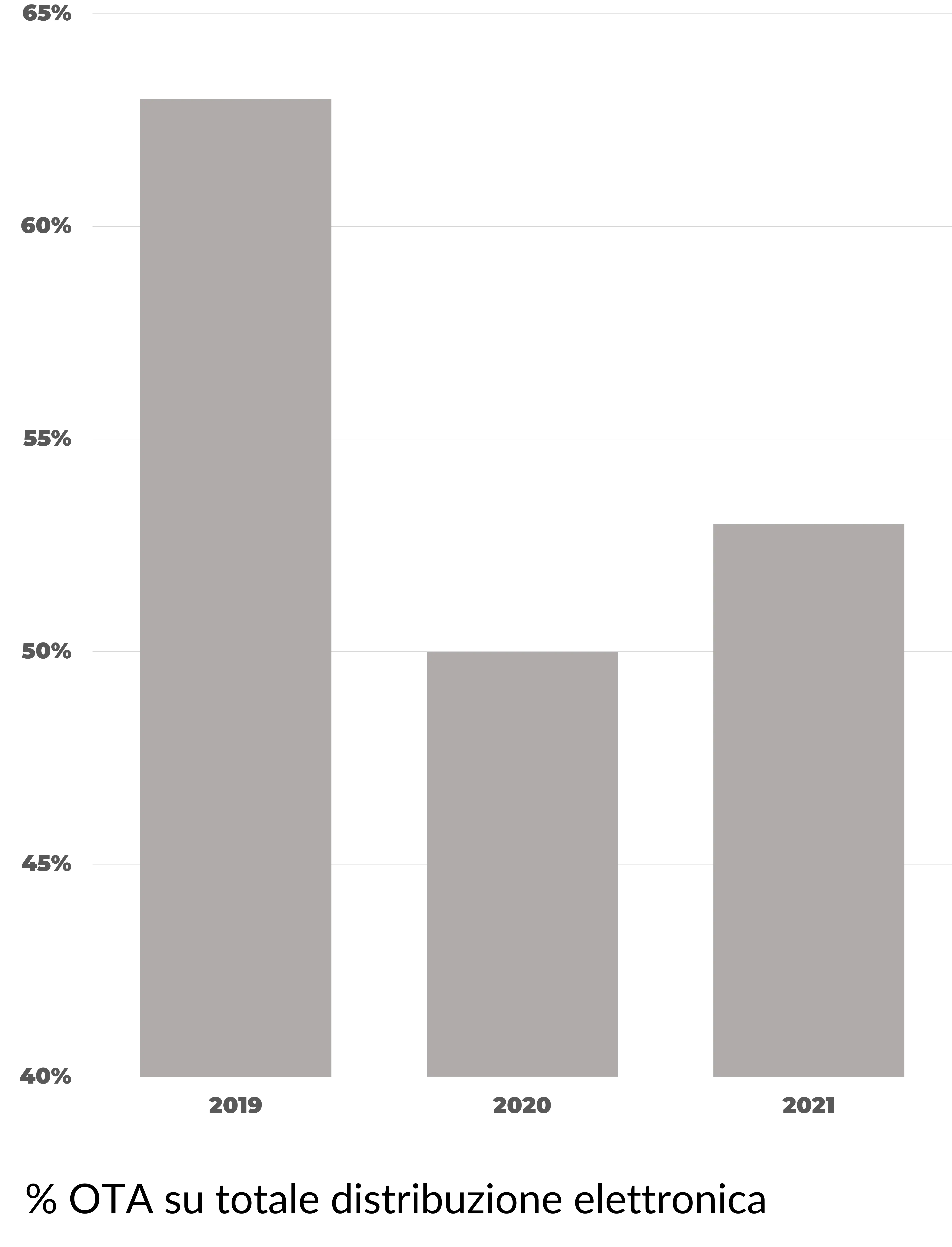Come già analizzato in un nostro precedente approfondimento, nel 2020 le OTA - riducendo di oltre il 50% la spesa in campagne pubblicitarie su motori e metamotori - persero un’importante quota di mercato. Oggi gli investimenti sono ripresi ed i risultati sono già evidenti: le OTA stanno riconquistando mercato a discapito del canale diretto di vendita.